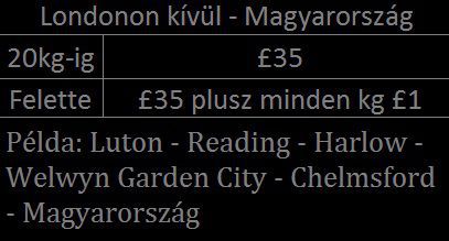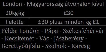 Az árak tájékoztató jellegűek, a pontos árhoz minden esetben meg kell adni a csomag méretét is.